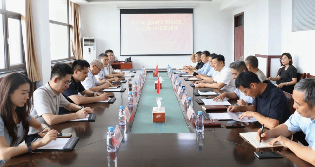 在枣庄大禹水务发展集团有限公司,徐征和一行调研了小季河农旅融合项目并开展水利建设创新发展座谈会。集团党委副书记、总经理姜东省系统介绍了企业发展历程、经营现状及重点水利工程项目推进情况。集团董事长张延成重点介绍了河道生态修复、智慧水文监测站以及相关配套设施的协同建设成果,并分析了当前在智慧水利建设、水生态修复等方面遇到的技术难题。徐征和介绍了学校水利学科的发展现状与特色优势,重点围绕水利信息化平台建设、智能监测技术应用等内容提出了建设性意见。随后,双方就河道生态治理、水利信息化建设、人才培养等内容开展深入交流。