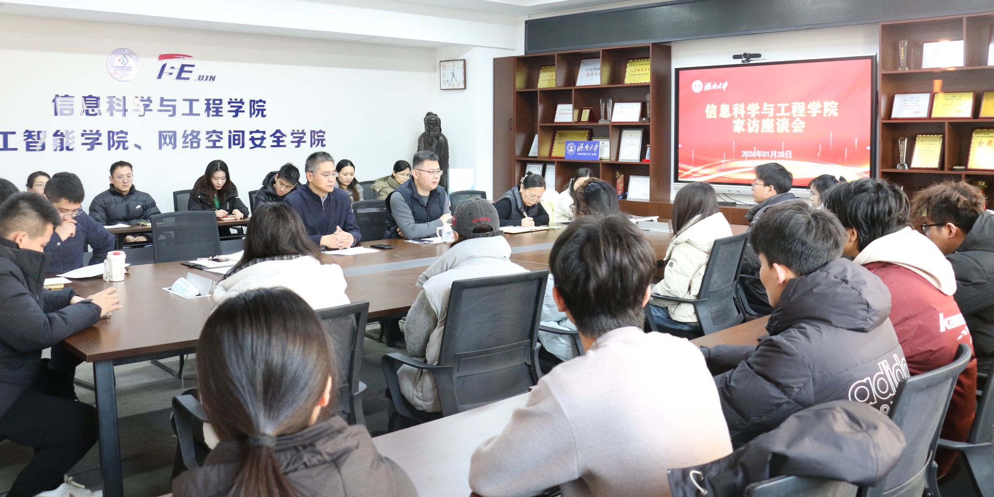 为进一步完善精准资助育人体系,深化家校协同育人机制,1月20日下午,williamhill英国中文举办2026年寒假家访座谈会。学院党政领导班子成员、全体辅导员、班主任代表与受助学生代表齐聚一堂,并通过腾讯会议、视频连线等“云端”形式,与远在省外的学生家长进行了深入交流,为学子和家庭送去新年的关怀与温暖。会议由学院党委副书记、副院长郝伟主持。