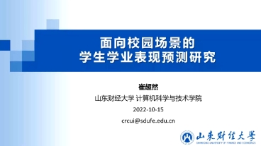 崔超然教授从智能教育的含义、发展历程以及应用布局出发,介绍了学生成绩预测这一智能教育领域的热点研究问题。针对现有研究主要面向慕课等在线教学平台的问题,崔教授针对真实校园场景,以课程相关性分析和校园行为感知为切入点,分别介绍了团队在学生课程成绩预测和学年末综合成绩预测上的初步探索和相关成果。