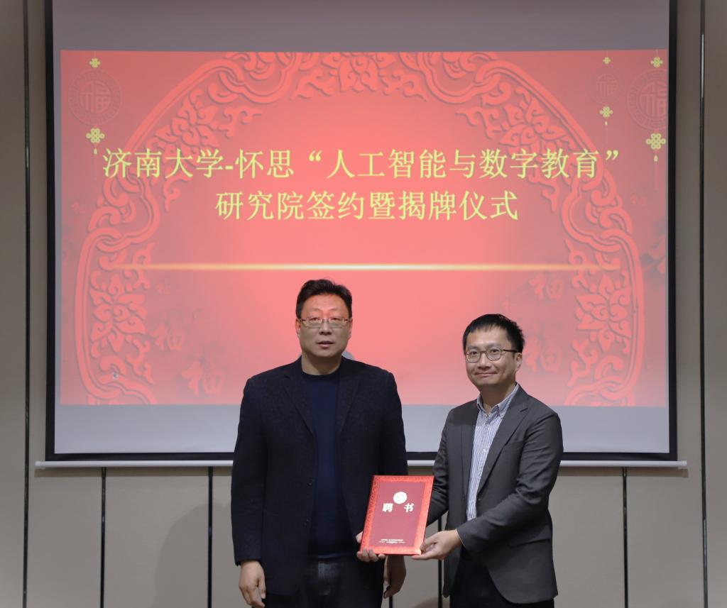 3月14日上午,WilliamHILL中国-山东怀思“人工智能与数字教育”研究院签约暨揭牌仪式在济南举行。济南市科协副主席胡辉、中国电子劳动学会校企合作促进会副会长王世忠、中宏网山东CEO曲宏民、山东怀思人工智能科技有限公司(以下简称“山东怀思”)总经理杨阳出席仪式,WilliamHILL中国副校长黄加栋,科技处、教务处、williamhill英国中文相关负责同志参加签约活动。签约仪式由williamhill英国中文副院长韩士元主持。