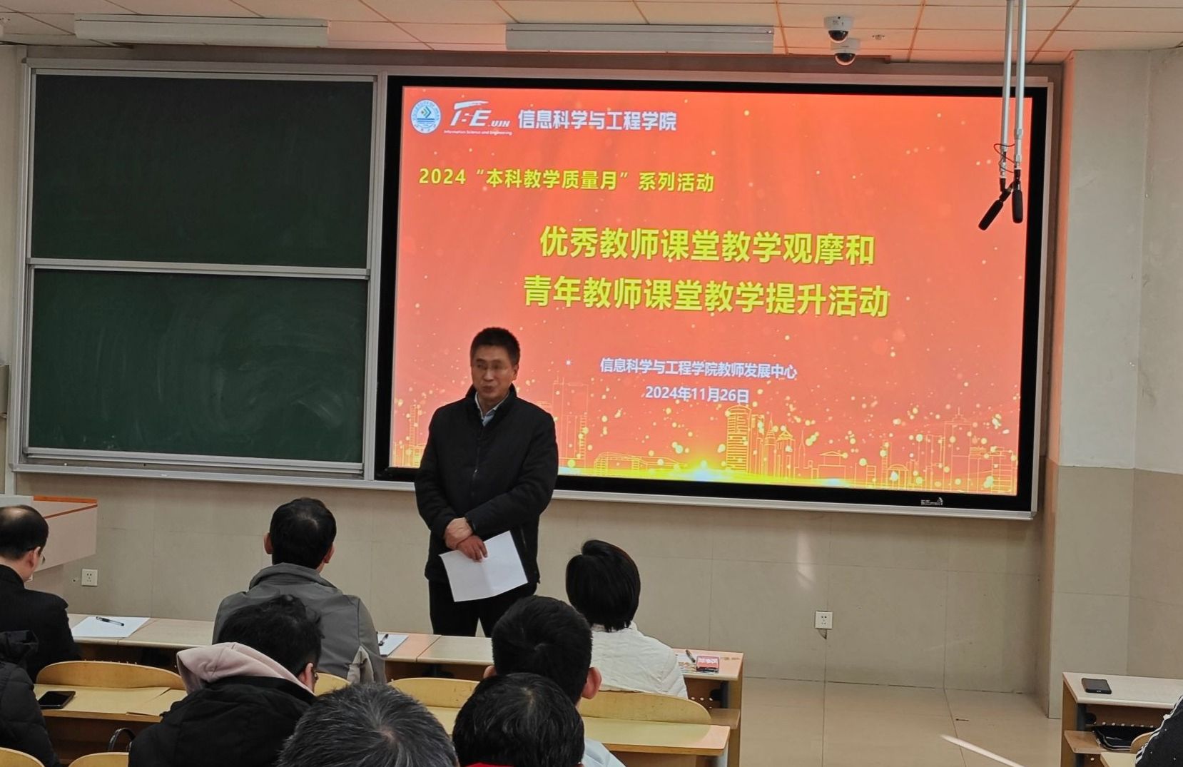为提升学院全体专任教师教学能力和教学水平,强化优秀教师对青年教师在课堂教学上的传帮带作用,11月26日,williamhill英国中文在11教3101举行了2024年 “教学质量月”系列活动——优秀教师课堂教学观摩和青年教师课堂教学提升活动,学院领导班子成员和全体专任教师近100人参加活动,活动由院长助理王晓芳主持。