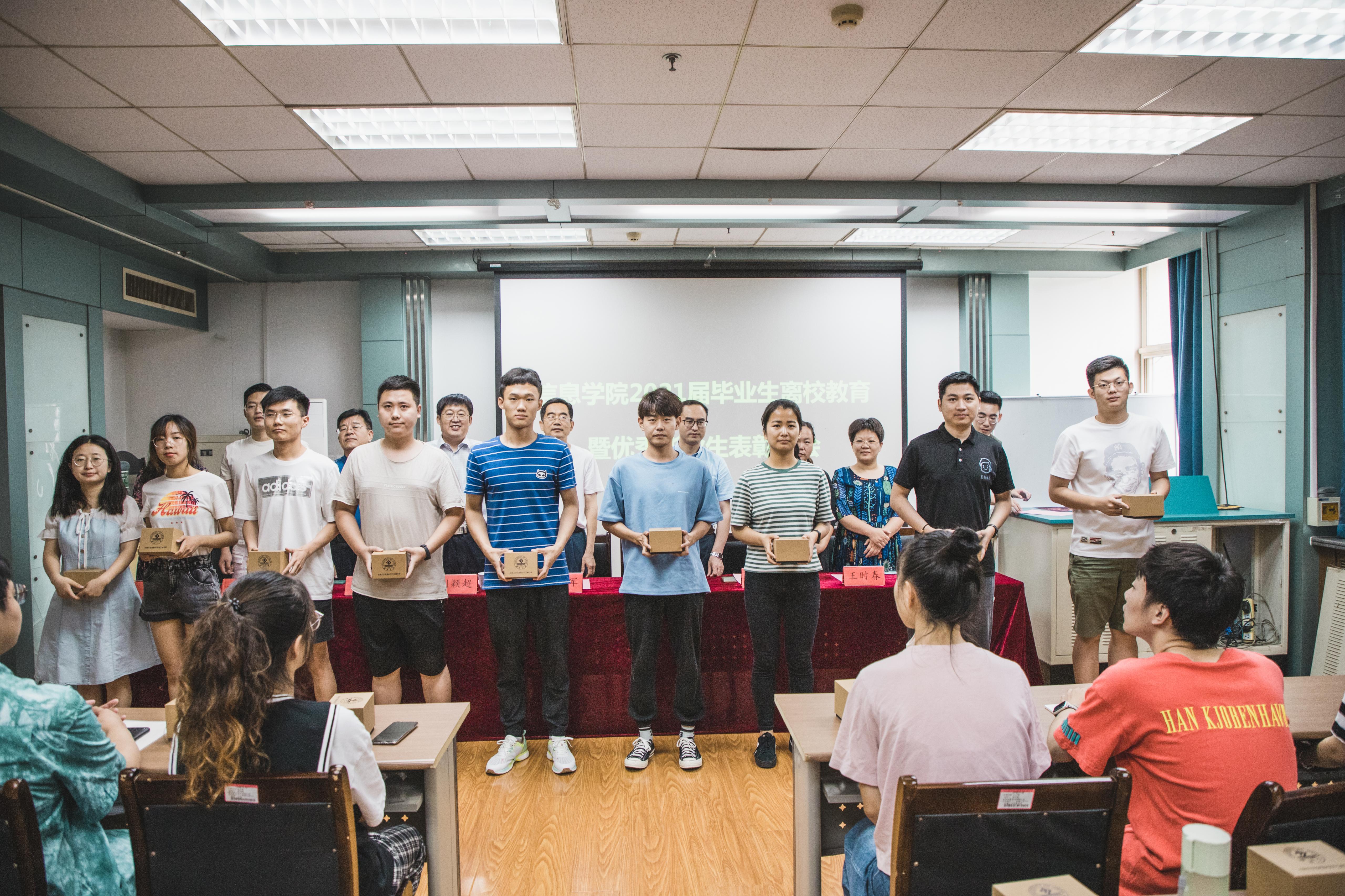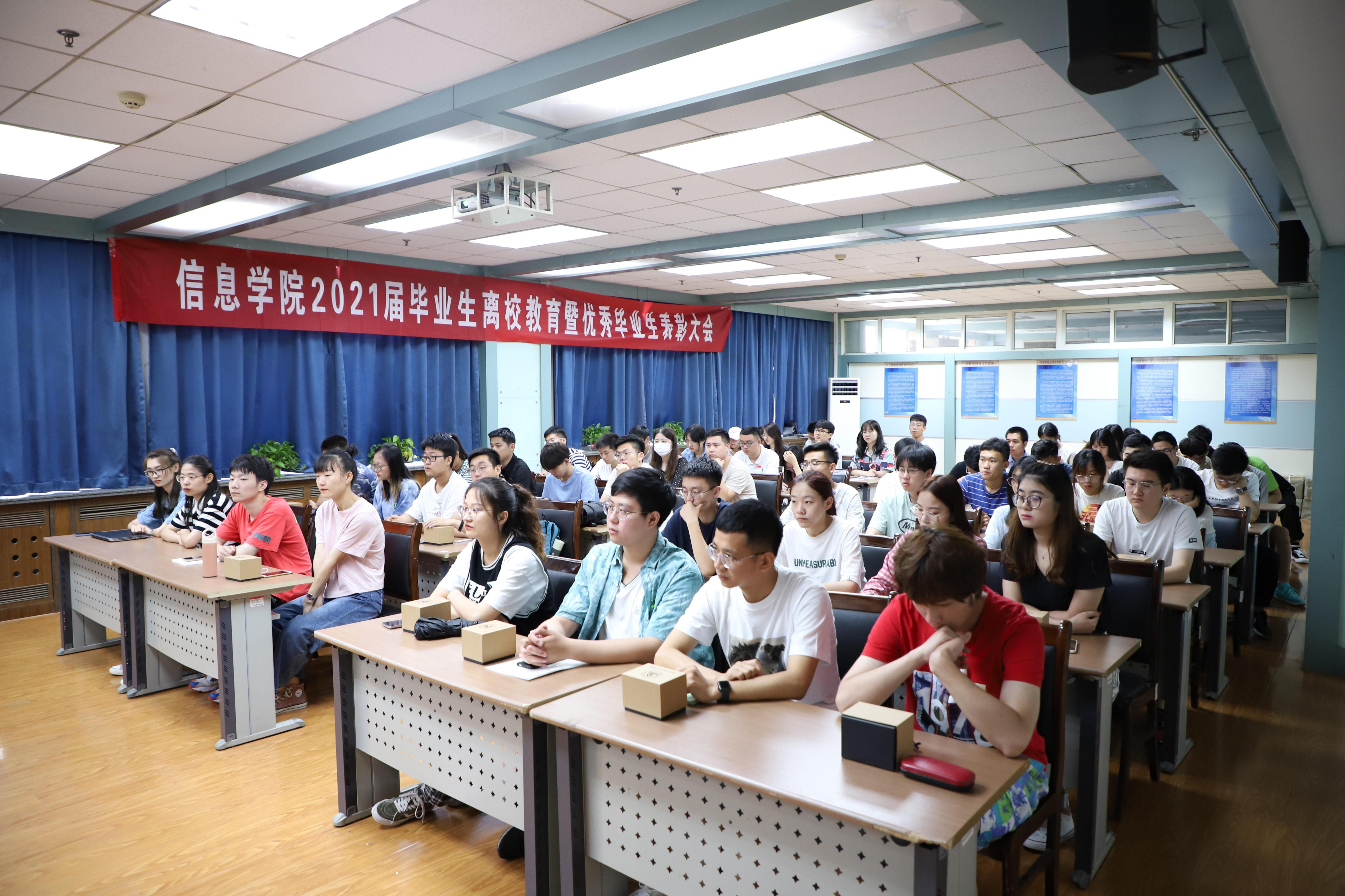 为积极做好2021届毕业生离校教育,表彰优秀毕业生,进一步促进学风建设,引导毕业生坚定理想信念,扣好步入社会的第一粒扣子,6月24日上午,信息科学与工程学院召开2021届毕业生离校教育暨优秀毕业生表彰大会。学院党委书记邱鲁军,院长陈贞翔,党委副书记、副院长刘颖超出席本次大会,各年级辅导员、优秀毕业生代表参加会议。会议由学院毕业班辅导员王豪主持会议。