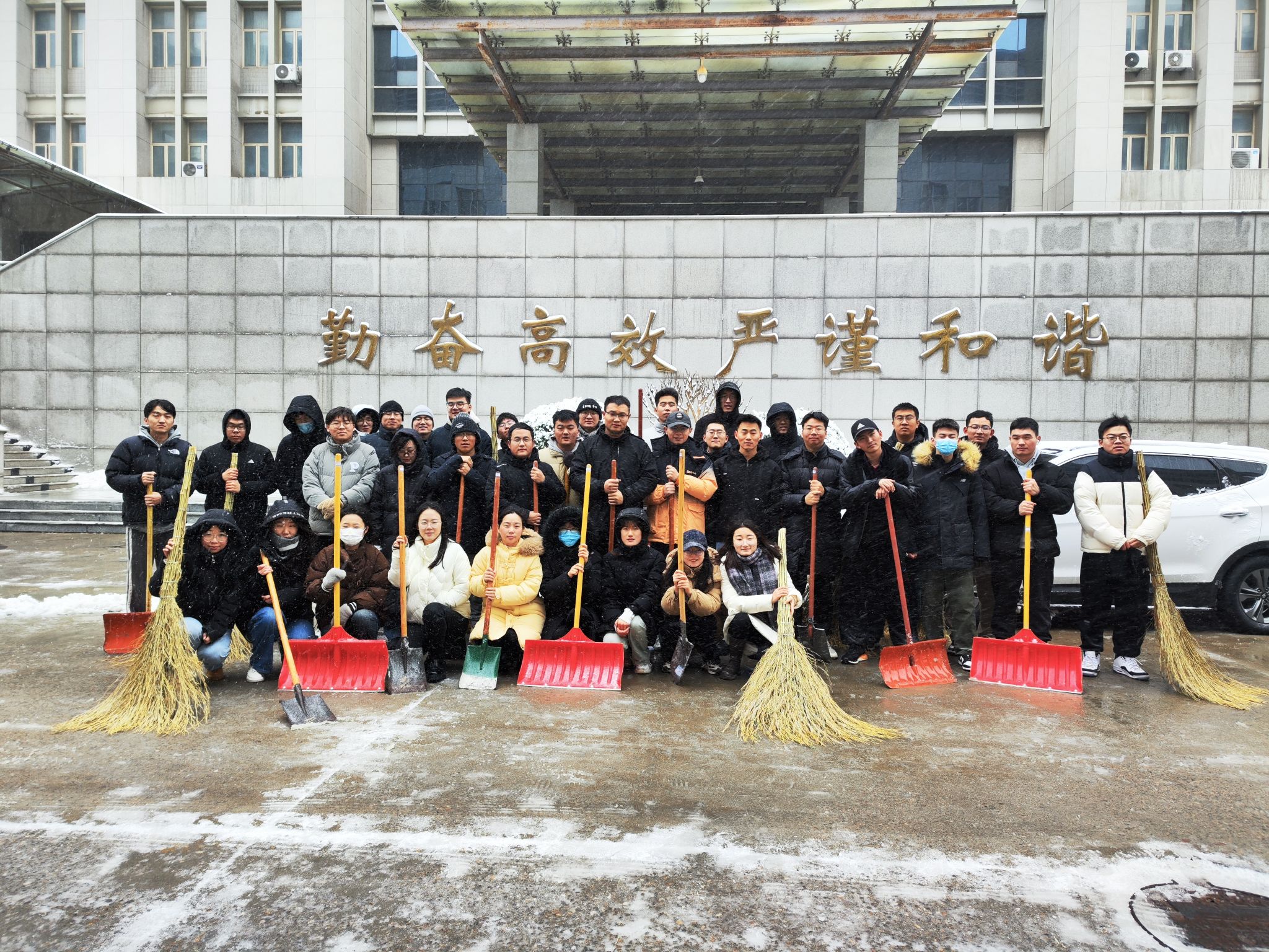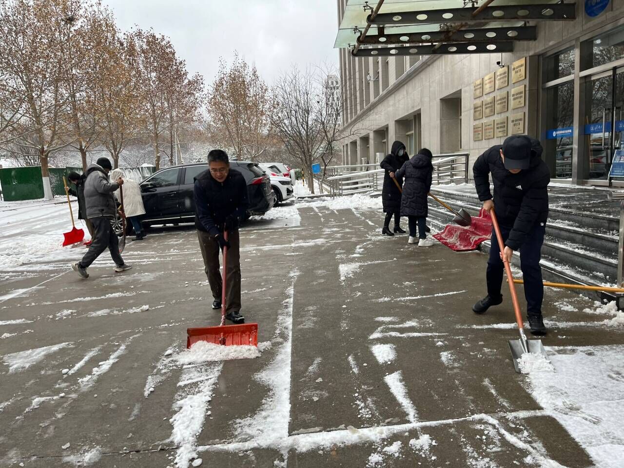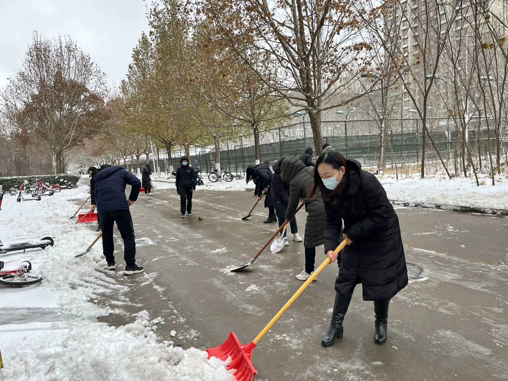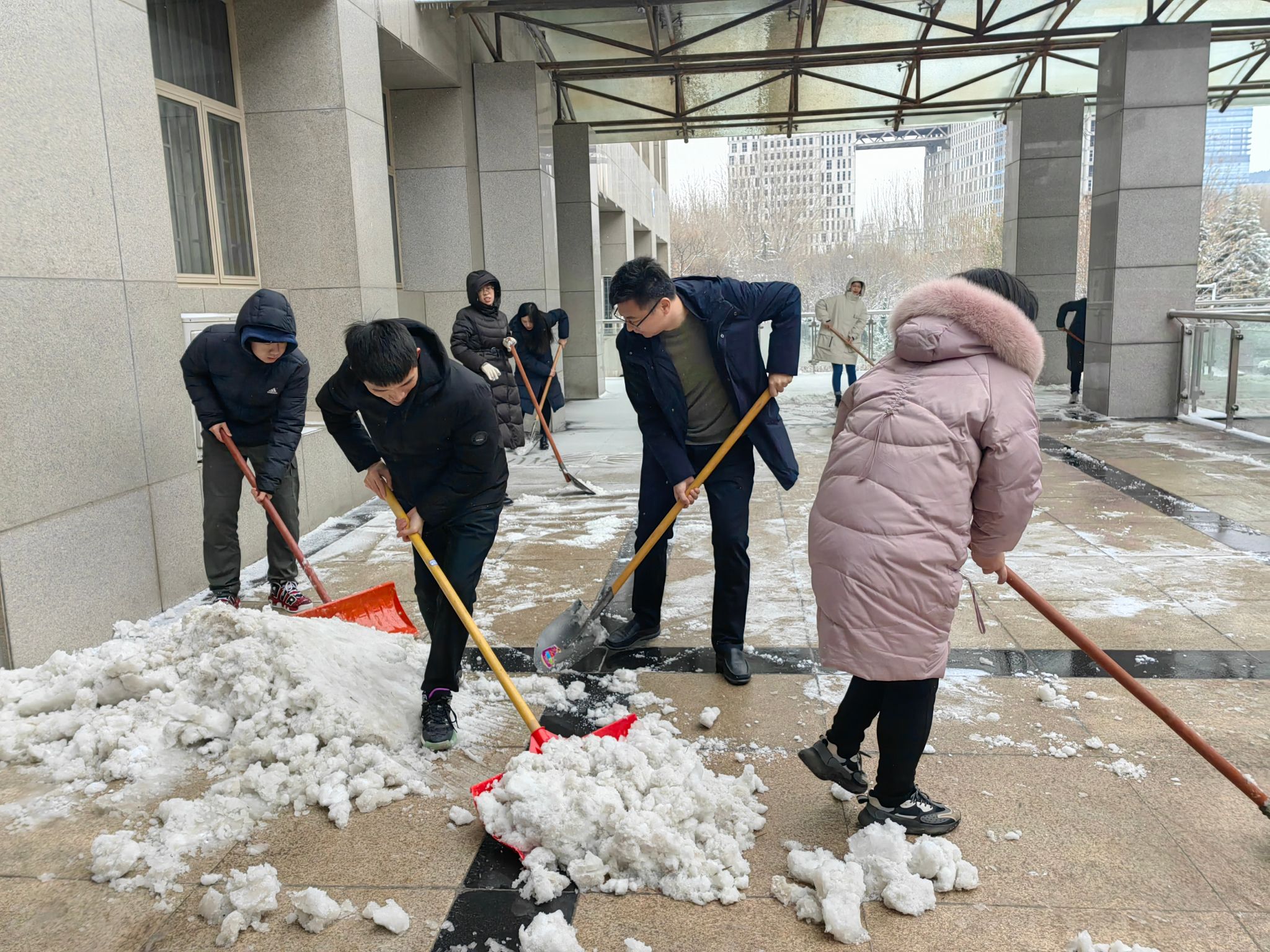 寒风阵阵,并没有阻挡党员同志除冰扫雪的热情。大家两人一伙、三人一群,齐心协力,配合默契,干得热火朝天,忙碌的身影构成了一道亮丽的风景线。虽然室外温度很低,但大家劳动的热情和团结的力量让这个冬日变得格外温暖。经过奋力清扫,校园内积雪积冰情况得到缓解,让道路变得安全畅通,为师生安全出行带来了便捷,清洁的道路给大家送去的不单单是方便、安全,更是传递了一份温暖和正能量。