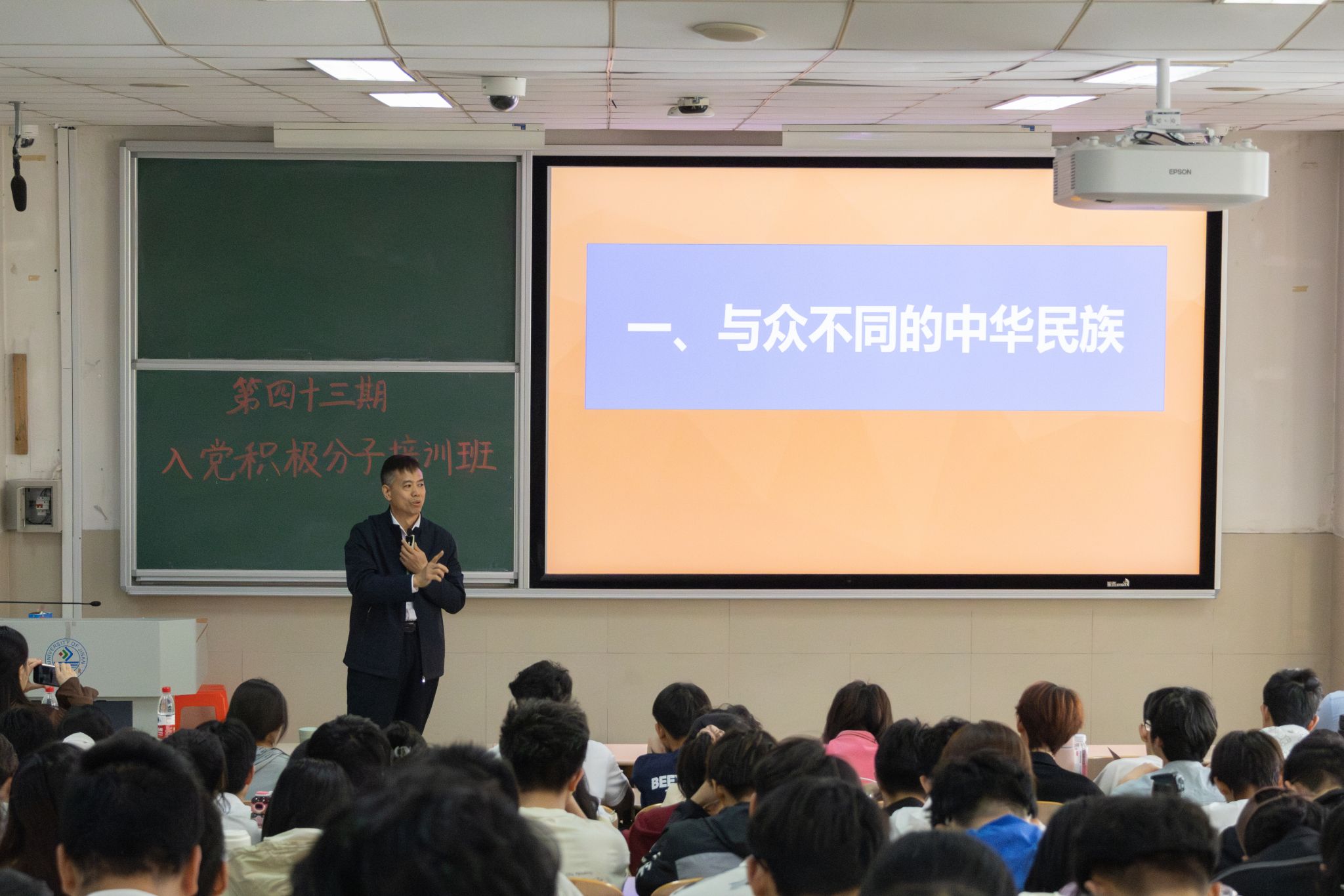 课堂上,李朋忠教授围绕“与众不同的中华民族”“与众不同的中国共产党人”“与众不同的WilliamHILL中国”和“立大志,明大德,成大才,担大任”四个方面展开深刻阐述。他以四大文明古国历史为切入点,深入剖析了中华民族的悠久历史,凸显出中华民族的自强不息精神以及中国人民的伟大智慧。随后,他从中国共产党百年筑梦的经验启示,提出了青年人成功的关键词,提醒大家要在行动中践行理想信念、在工作中成人成己。紧接着,李朋忠教授向大家讲述了校训“弘毅、博学、求真、至善”背后的伟大力量。最后,他向学员们提出要求,希望大家在今后的学习生活中立大志、明大德、成大才、担大任,在民族伟大复兴中踏实践行青年人的使命与担当。