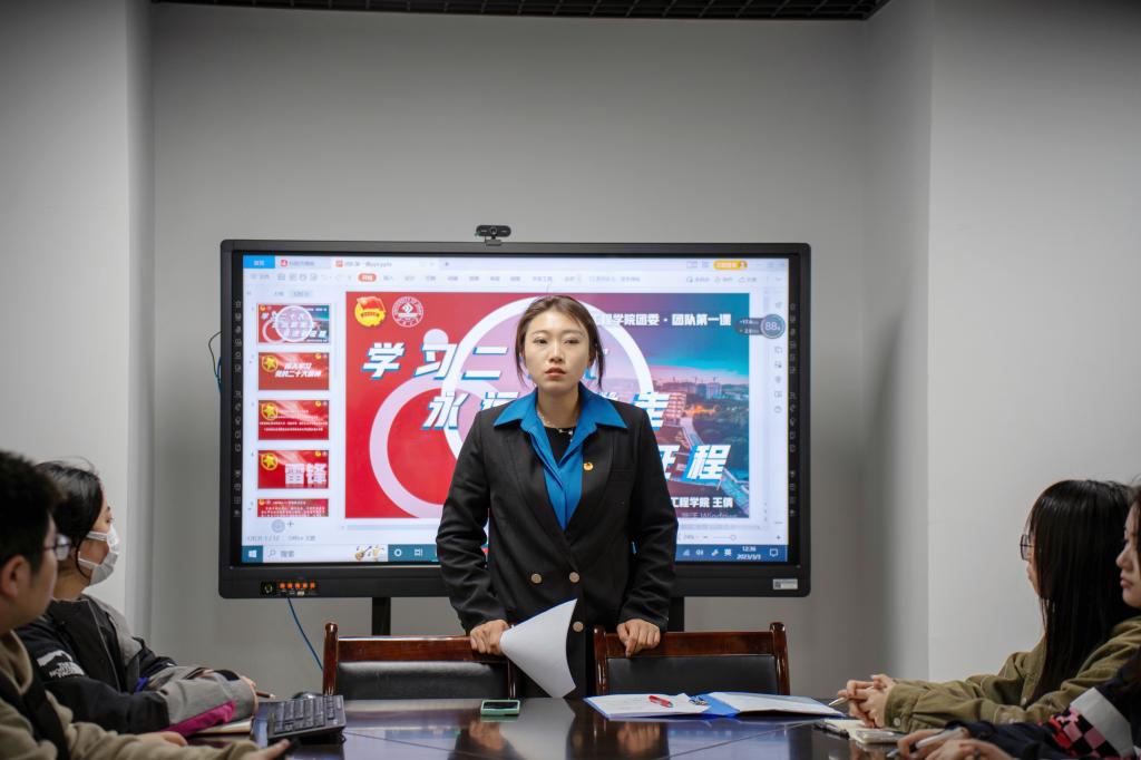 随后,王倩老师从“深刻领会党的二十大的主题” “深刻领会新时代新征程中国共产党的使命任务” “深刻领会教育科技人才、法治建设 、国家安全等方面的重大部署” “深刻领会坚持党的全面领导和全面从严治党的重大部署”四个方面,带领同学们共同学习了党的二十大精神的重要内容。王倩老师指出,作为新时代的青年人,要不断增进对党的信赖、信念、信心,将个人命运与国家紧密相连,学好专业技能,提升专业素养,努力为行业、社会和国家的蓬勃发展做出贡献。