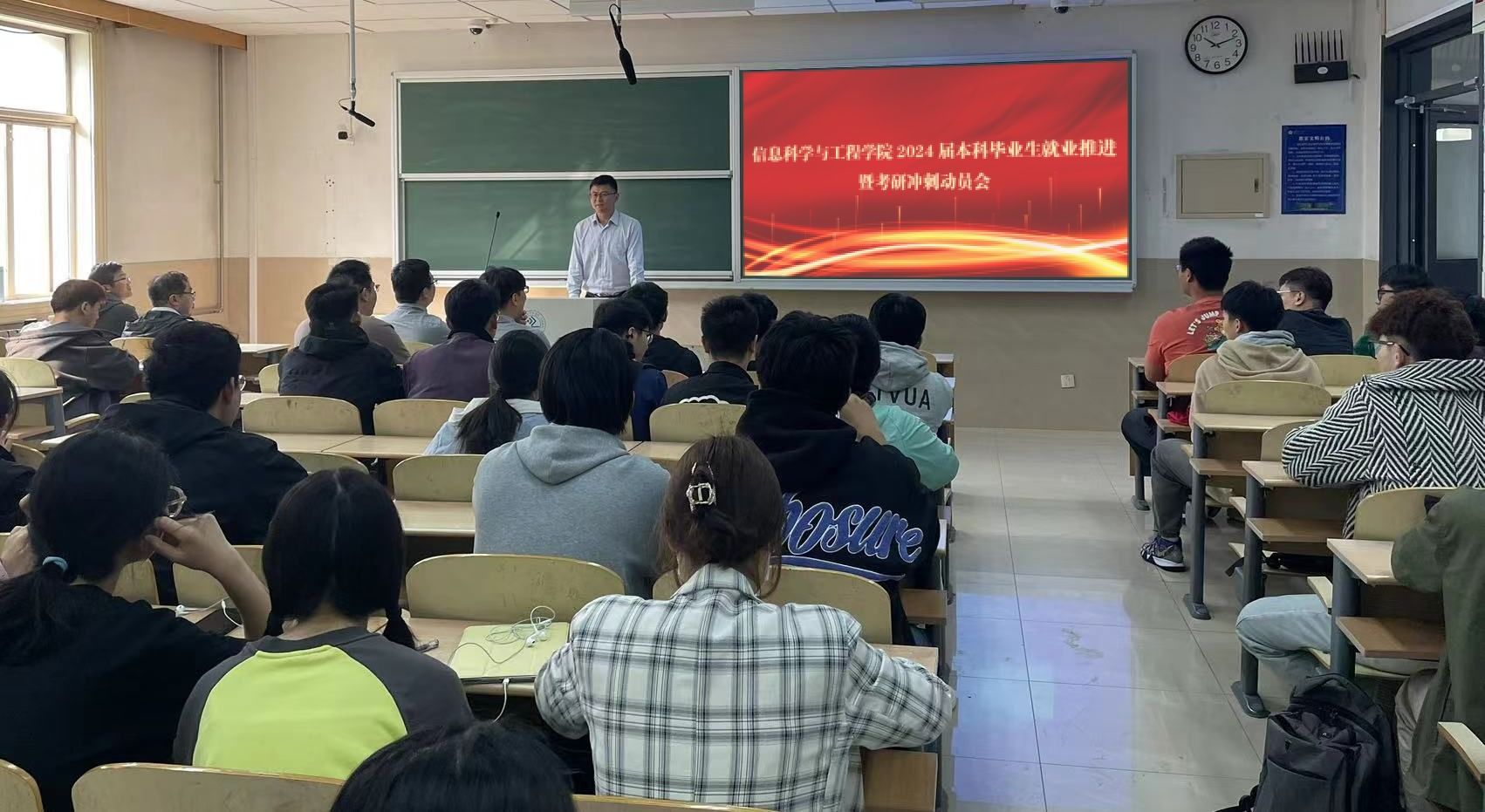 为推动我院本科毕业生社会就业及考研升学指导工作开展,10月25日上午,williamhill英国中文2024届本科毕业生就业推进暨考研冲刺动员会于第十教学楼顺利召开。学院党委副书记、副院长郝伟,副院长杨晓晖,各系系主任,部分研究生导师及相关学工人员出席本次会议,2024届200余名本科毕业生代表参加会议。会议邀请山东大学李阳教授,学院集成电路系系主任张春伟副教授,计算机系牛四杰教授、夏英杰老师和王琳教授课题组在读博士宁帅作指导交流。动员会由2020级辅导员孟莹主持。
